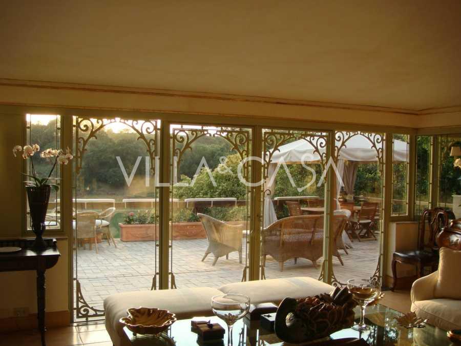 Vienā no prestižākajiem un apsargātākajiem dzīvojamo kompleksiem Romas ziemeļos, Due Ponti / Corso Francia rajonā, blakus Parco di Roma 18 bedrīšu golfa klubam, tiek piedāvāta izīrēšanai izcila vēsturiska villa, kuras platība ir aptuveni 700 m², izvietota piecos līmeņos ar terasēm un privātām āra telpām.