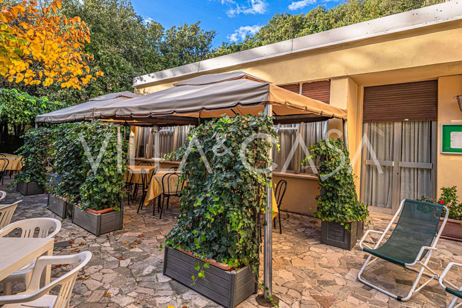 Viesnīcas restorāns ir pelnījis īpašu uzmanību: elegantā iekštelpu zāle var uzņemt 120 viesus (vēl 30 vietas ir uz terases) un piedāvā izsmalcinātu virtuvi un nevainojamu apkalpošanu. Gleznainā terase zem klajas debess, kas slīgst zaļumos, ļauj baudīt maltīti dabas skaņu pavadījumā. Šeit atrodas arī bārs, atpūtas zona, solārijs, āra kamīns grilēšanai, bērnu rotaļu laukums, boče spēles laukums un privāta autostāvvieta.