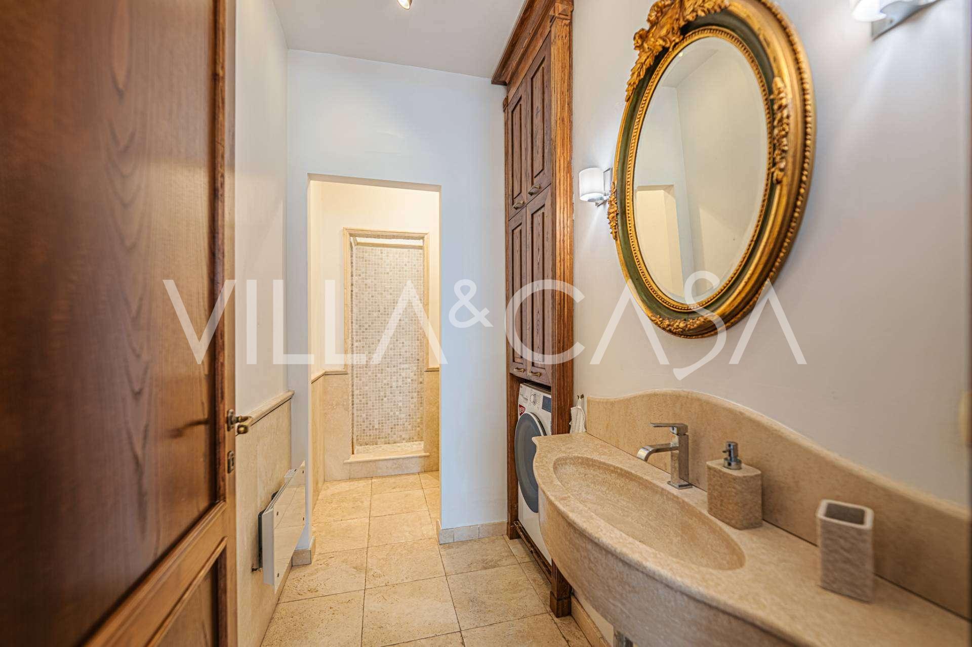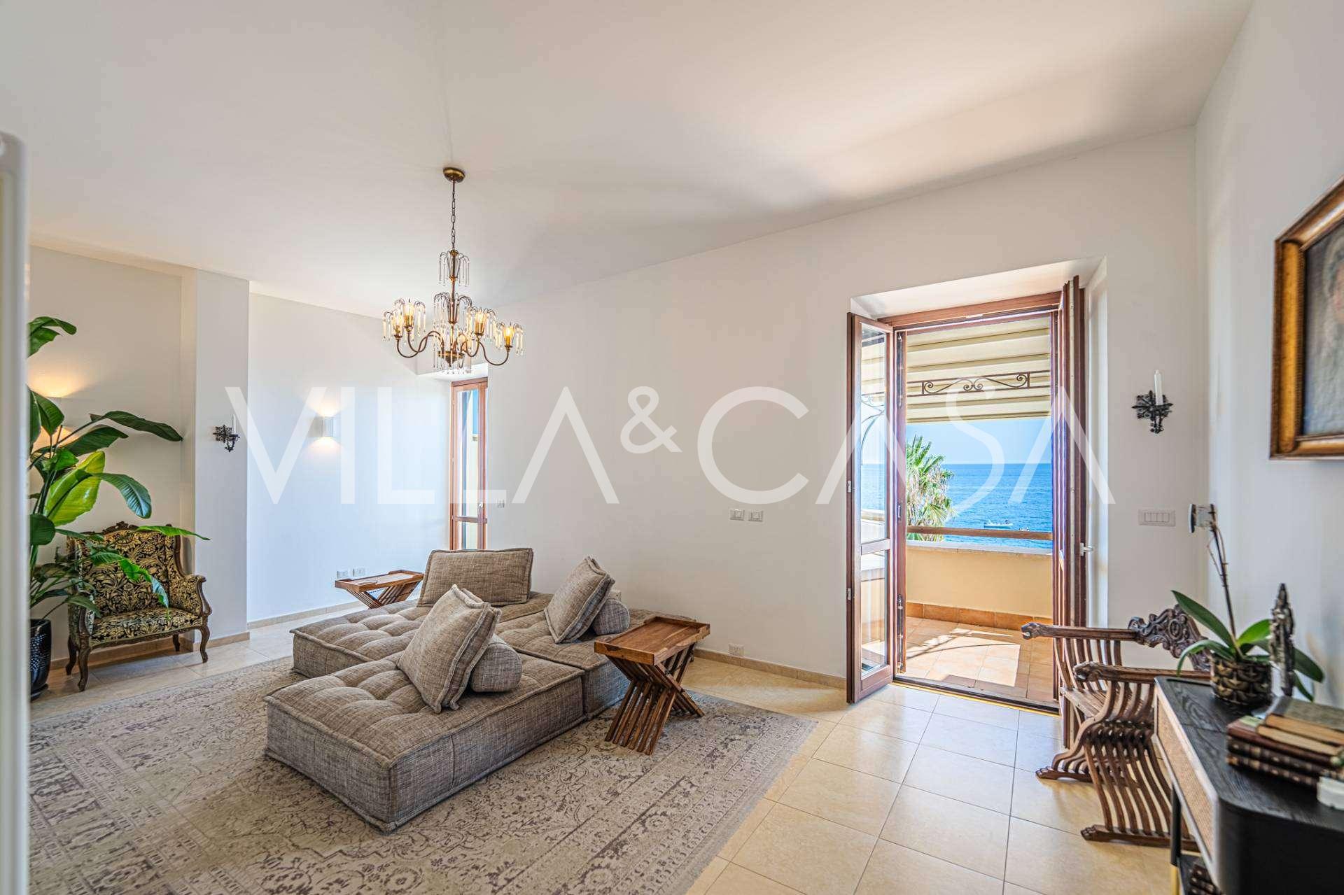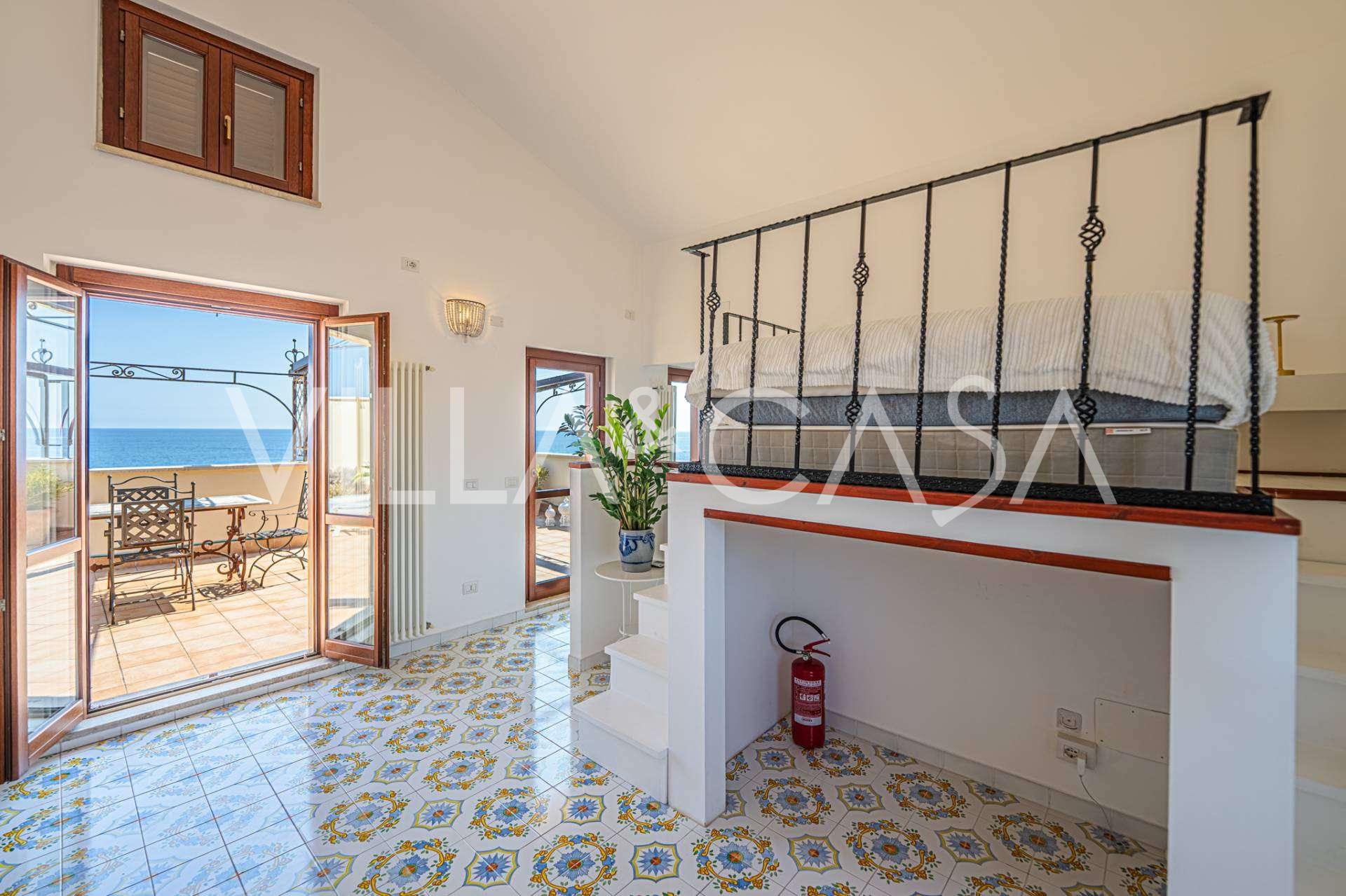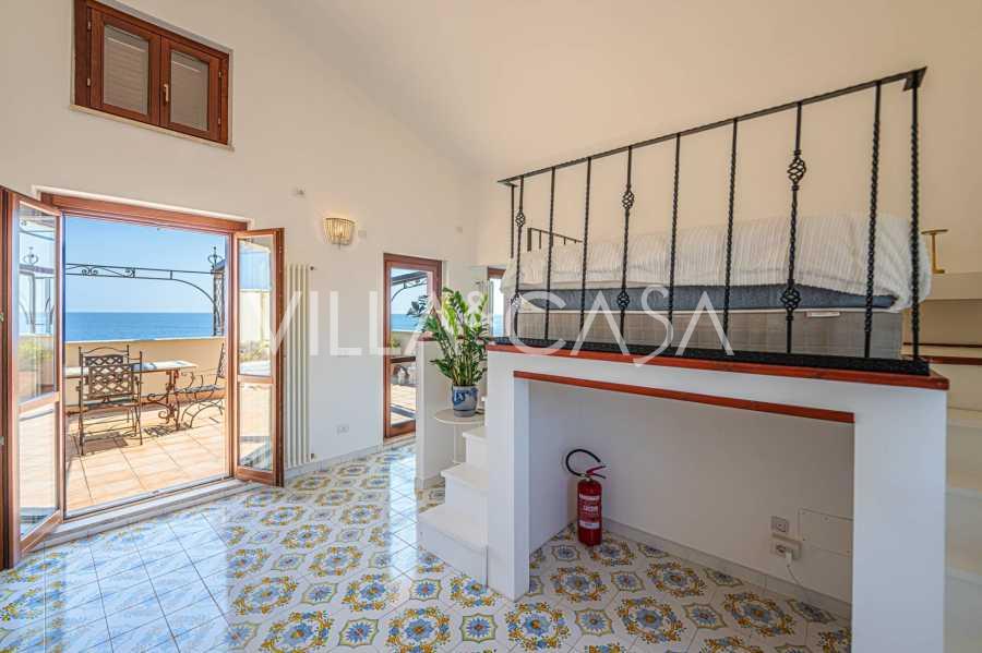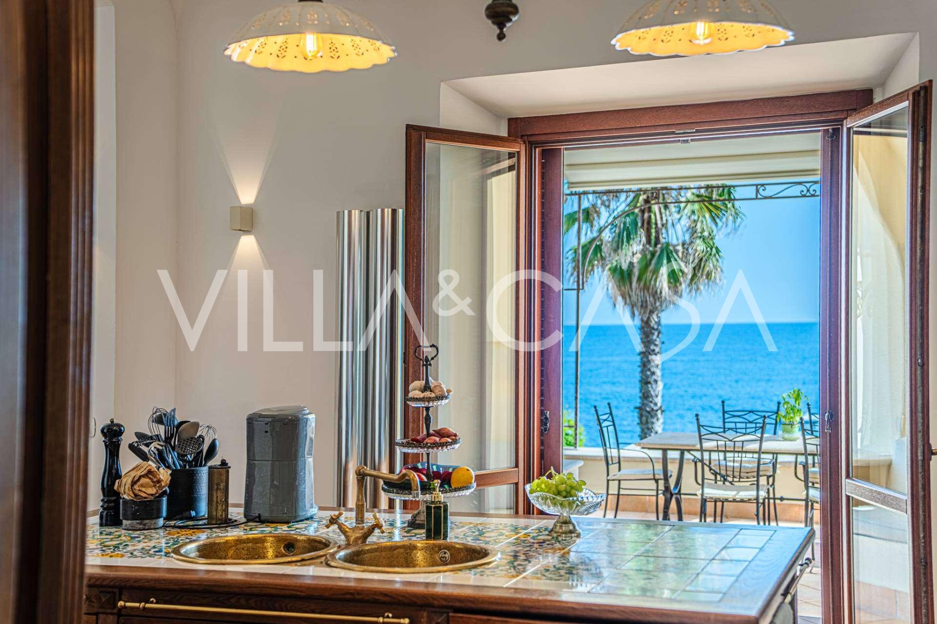 Galvenā viesistaba, rotāta ar lieliem logiem, iziet uz terasi, kas ir ideāli piemērota saziņai un retu saulrietu baudīšanai. Virtuve, izgatavota pēc individuāla pasūtījuma, apvieno estētiku un funkcionalitāti, ar salu, kas dekorēta ar Positano flīzēm, un oriģināliem vara izlietnēm.
