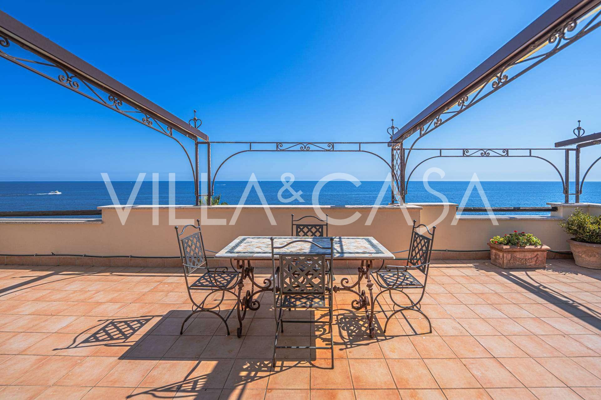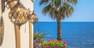 Logi piedāvā panorāmas 180 grādu skatu uz jūru, zilais horizonts piepilda katru iekšējo telpu un sniedzas līdz plašām panorāmas terasēm. Iekšējās telpas, ar vairāk nekā trīs metru augstiem griestiem, terakotas grīdām no tā laika, marmora kāpnēm un kamīnu, rada izsmalcinātas, mūžīgas elegances atmosfēru.